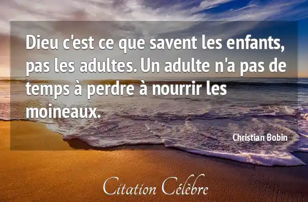 Dieu c'est ce que savent les enfants, pas les adultes. Un adulte n'a pas de temps à perdre à nourrir les moineaux.