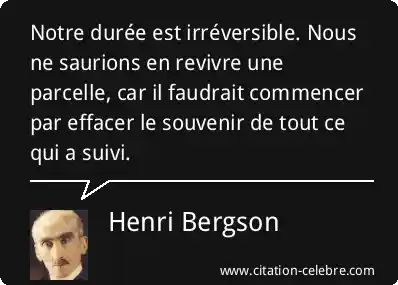 Notre durée est irréversible. Nous ne saurions en revivre une parcelle, car il faudrait commencer par effacer le souvenir de tout ce qui a suivi.
