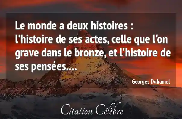 Le monde a deux histoires : l'histoire de ses actes, celle que l'on grave dans le bronze, et l'histoire de ses pensées....