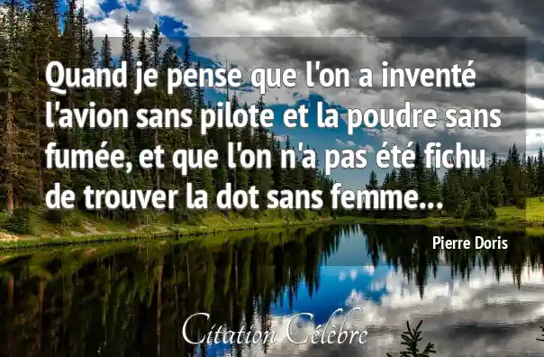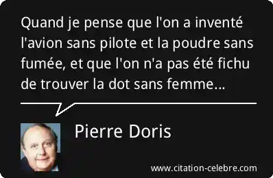 Quand je pense que l'on a inventé l'avion sans pilote et la poudre sans fumée, et que l'on n'a pas été fichu de trouver la dot sans femme...