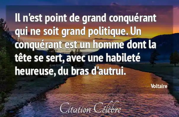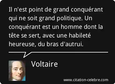 Il n'est point de grand conquérant qui ne soit grand politique. Un conquérant est un homme dont la tête se sert, avec une habileté heureuse, du bras d'autrui.