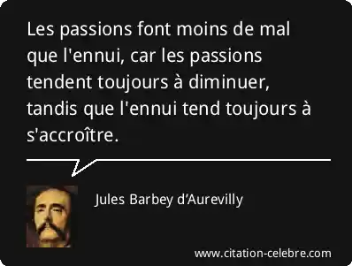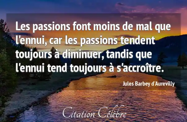 Les passions font moins de mal que l'ennui, car les passions tendent toujours à diminuer, tandis que l'ennui tend toujours à s'accroître.