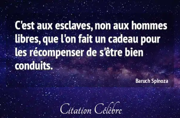 C'est aux esclaves, non aux hommes libres, que l'on fait un cadeau pour les récompenser de s'être bien conduits.
