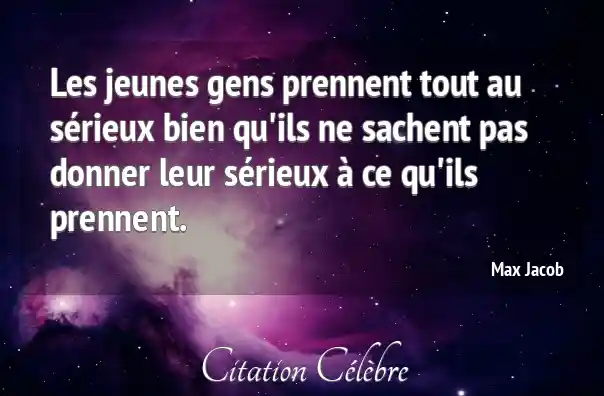 Les jeunes gens prennent tout au sérieux bien qu'ils ne sachent pas donner leur sérieux à ce qu'ils prennent.