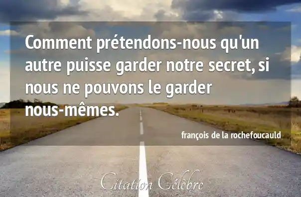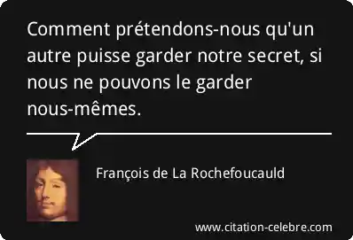 Comment prétendons-nous qu'un autre puisse garder notre secret, si nous ne pouvons le garder nous-mêmes.