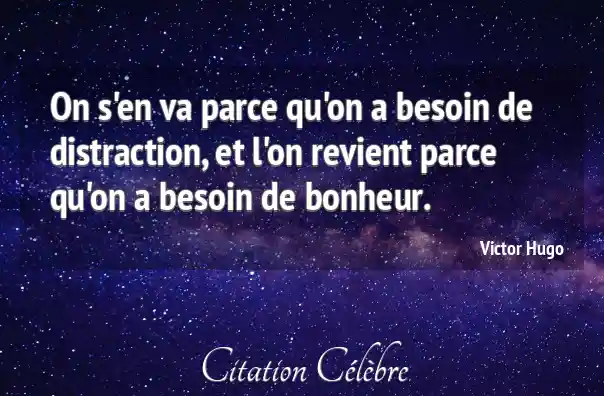 On s'en va parce qu'on a besoin de distraction, et l'on revient parce qu'on a besoin de bonheur.