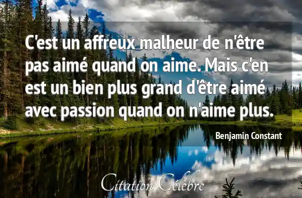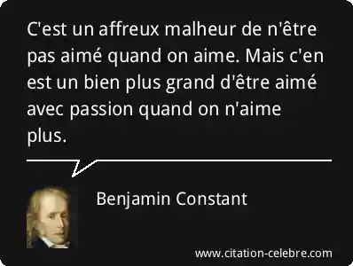 C'est un affreux malheur de n'être pas aimé quand on aime. Mais c'en est un bien plus grand d'être aimé avec passion quand on n'aime plus.