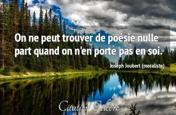 On ne peut trouver de poésie nulle part quand on n'en porte pas en soi.