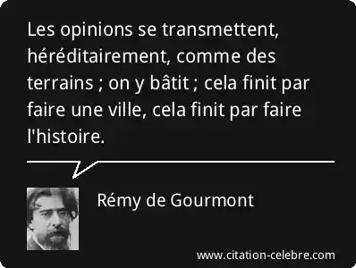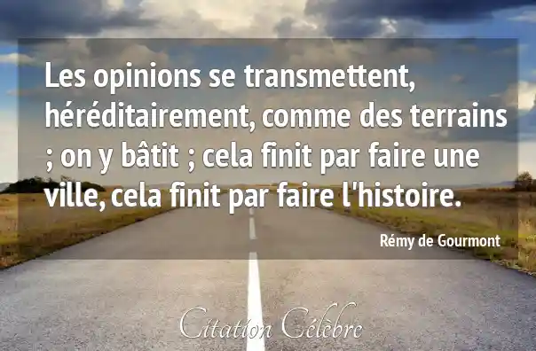 Les opinions se transmettent, héréditairement, comme des terrains ; on y bâtit ; cela finit par faire une ville, cela finit par faire l'histoire.