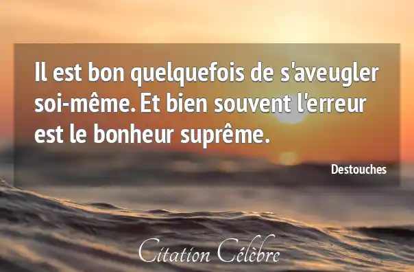 Il est bon quelquefois de s'aveugler soi-même. Et bien souvent l'erreur est le bonheur suprême.