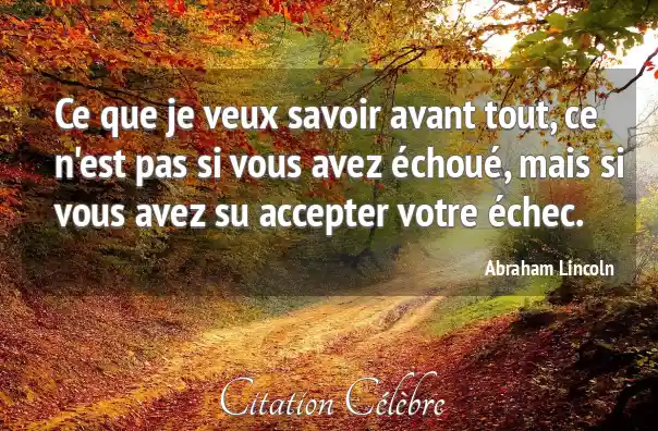 Ce que je veux savoir avant tout, ce n'est pas si vous avez échoué, mais si vous avez su accepter votre échec.
