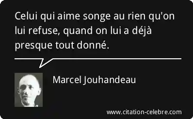 Celui qui aime songe au rien qu'on lui refuse, quand on lui a déjà presque tout donné.