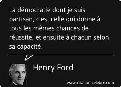La démocratie dont je suis partisan, c'est celle qui donne à tous les mêmes chances de réussite, et ensuite à chacun selon sa capacité.