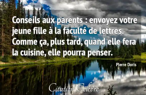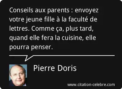 Conseils aux parents : envoyez votre jeune fille à la faculté de lettres. Comme ça, plus tard, quand elle fera la cuisine, elle pourra penser.