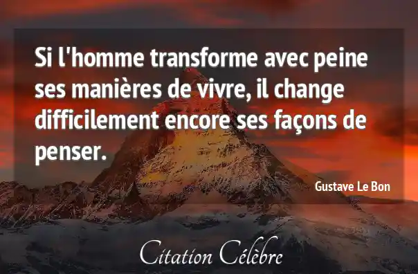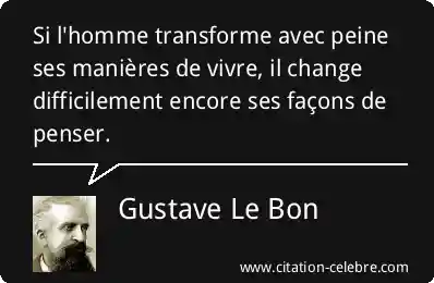 Si l'homme transforme avec peine ses manières de vivre, il change difficilement encore ses façons de penser.