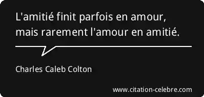 L'amitié finit parfois en amour, mais rarement l'amour en amitié.
