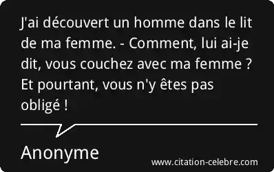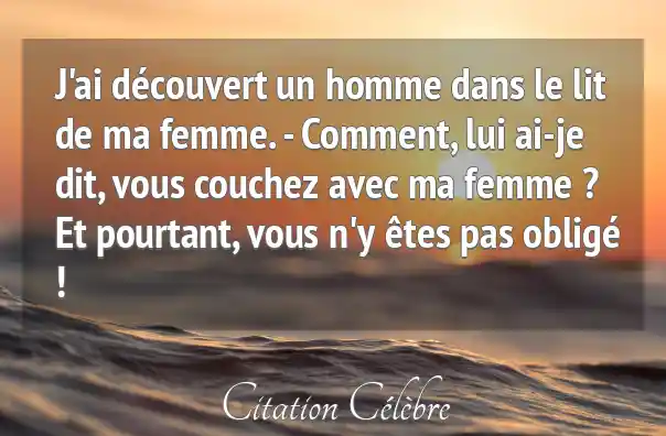 J'ai découvert un homme dans le lit de ma femme. - Comment, lui ai-je dit, vous couchez avec ma femme ? Et pourtant, vous n'y êtes pas obligé !