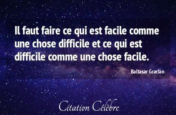 Il faut faire ce qui est facile comme une chose difficile et ce qui est difficile comme une chose facile.