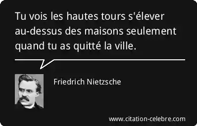 Tu vois les hautes tours s'élever au-dessus des maisons seulement quand tu as quitté la ville.
