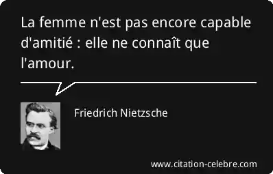 La femme n'est pas encore capable d'amitié : elle ne connaît que l'amour.