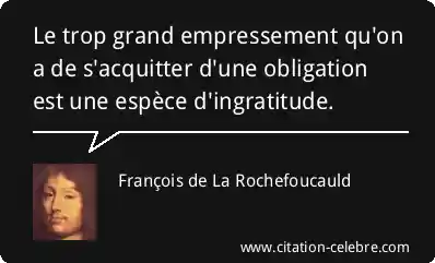 Le trop grand empressement qu'on a de s'acquitter d'une obligation est une espèce d'ingratitude.