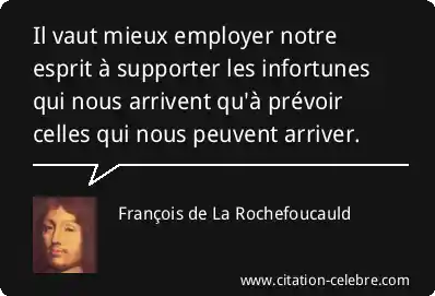 Il vaut mieux employer notre esprit à supporter les infortunes qui nous arrivent qu'à prévoir celles qui nous peuvent arriver.