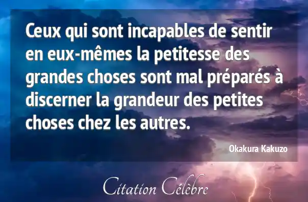 Ceux qui sont incapables de sentir en eux-mêmes la petitesse des grandes choses sont mal préparés à discerner la grandeur des petites choses chez les autres.