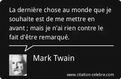 La dernière chose au monde que je souhaite est de me mettre en avant ; mais je n'ai rien contre le fait d'être remarqué.