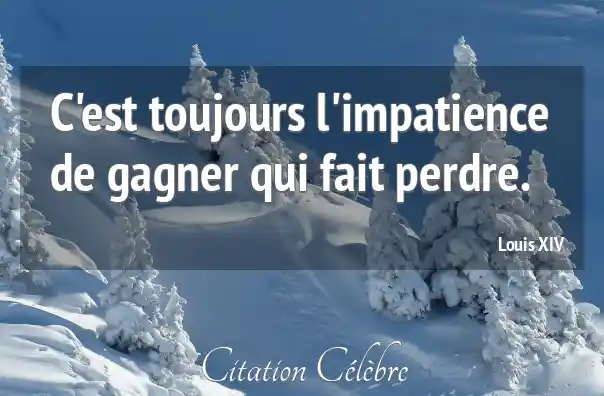 C'est toujours l'impatience de gagner qui fait perdre.