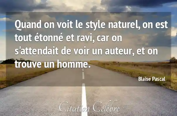 Quand on voit le style naturel, on est tout étonné et ravi, car on s'attendait de voir un auteur, et on trouve un homme.