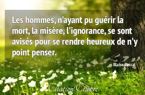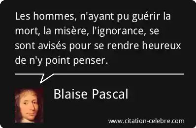 Les hommes, n'ayant pu guérir la mort, la misère, l'ignorance, se sont avisés pour se rendre heureux de n'y point penser.