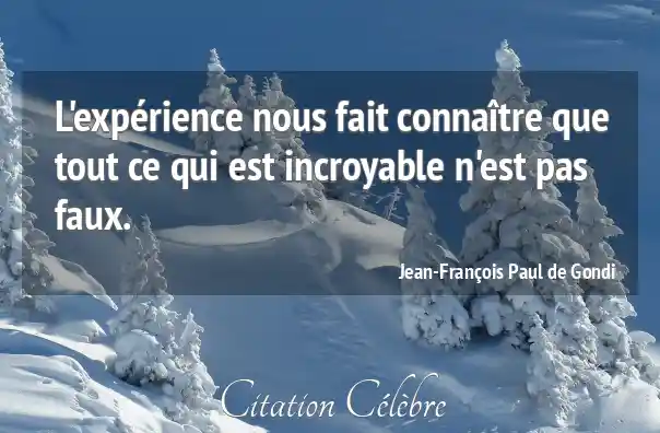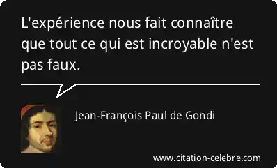 L'expérience nous fait connaître que tout ce qui est incroyable n'est pas faux.