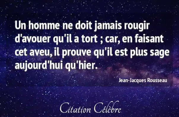 Un homme ne doit jamais rougir d'avouer qu'il a tort ; car, en faisant cet aveu, il prouve qu'il est plus sage aujourd'hui qu'hier.