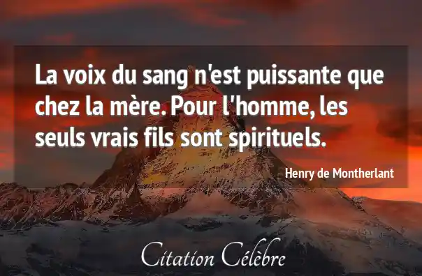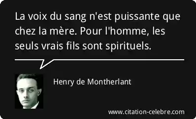 La voix du sang n'est puissante que chez la mère. Pour l'homme, les seuls vrais fils sont spirituels.
