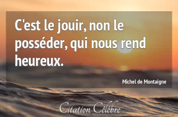 C'est le jouir, non le posséder, qui nous rend heureux.