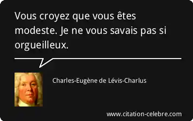 Vous croyez que vous êtes modeste. Je ne vous savais pas si orgueilleux.