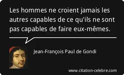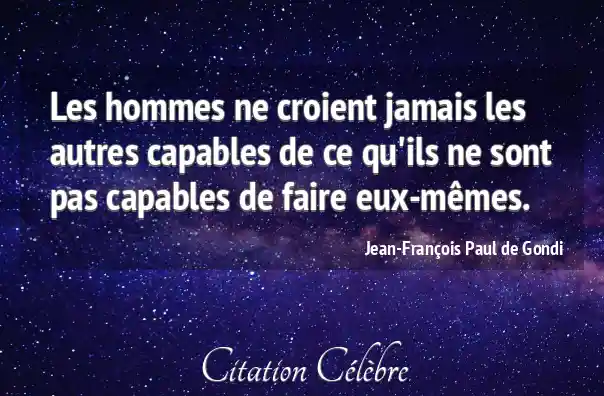 Les hommes ne croient jamais les autres capables de ce qu'ils ne sont pas capables de faire eux-mêmes.