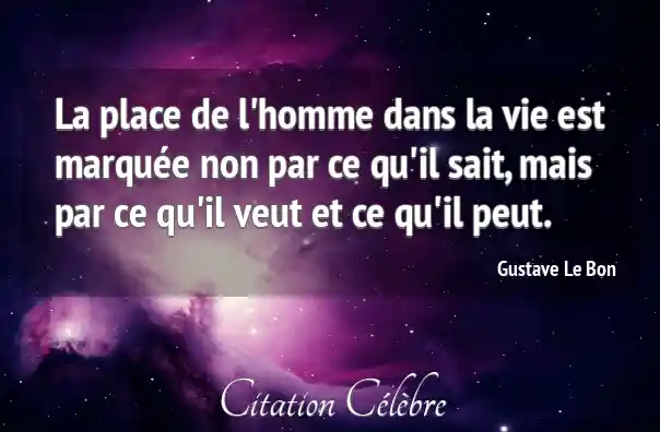 La place de l'homme dans la vie est marquée non par ce qu'il sait, mais par ce qu'il veut et ce qu'il peut.
