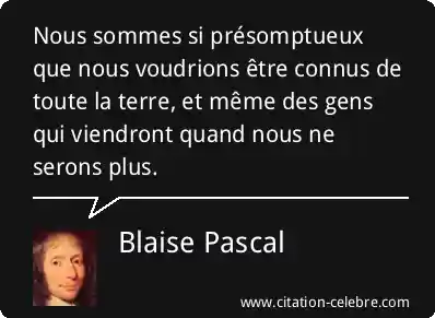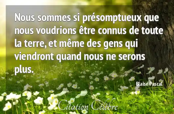 Nous sommes si présomptueux que nous voudrions être connus de toute la terre, et même des gens qui viendront quand nous ne serons plus.