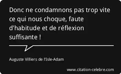 Donc ne condamnons pas trop vite ce qui nous choque, faute d'habitude et de réflexion suffisante !