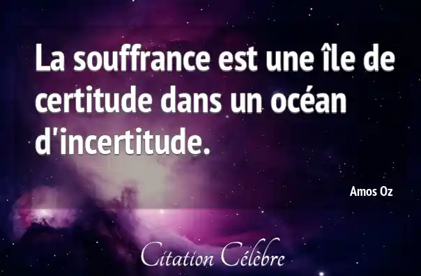 La souffrance est une île de certitude dans un océan d'incertitude.