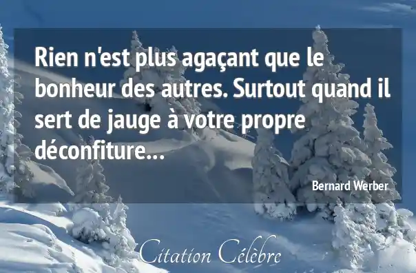 Rien n'est plus agaçant que le bonheur des autres. Surtout quand il sert de jauge à votre propre déconfiture...
