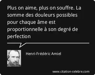 Plus on aime, plus on souffre. La somme des douleurs possibles pour chaque âme est proportionnelle à son degré de perfection