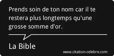 Citation La Bible longtemps : Prends soin de ton nom car il te restera plus...