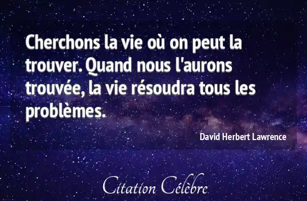 Cherchons la vie où on peut la trouver. Quand nous l'aurons trouvée, la vie résoudra tous les problèmes.