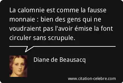 La calomnie est comme la fausse monnaie : bien des gens qui ne voudraient pas l'avoir émise la font circuler sans scrupule.