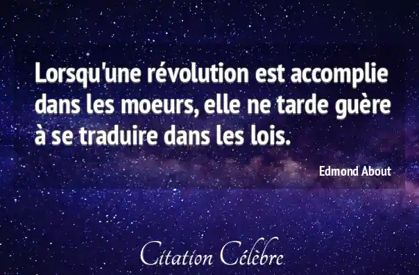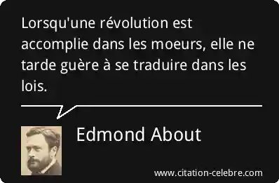 Lorsqu'une révolution est accomplie dans les moeurs, elle ne tarde guère à se traduire dans les lois.