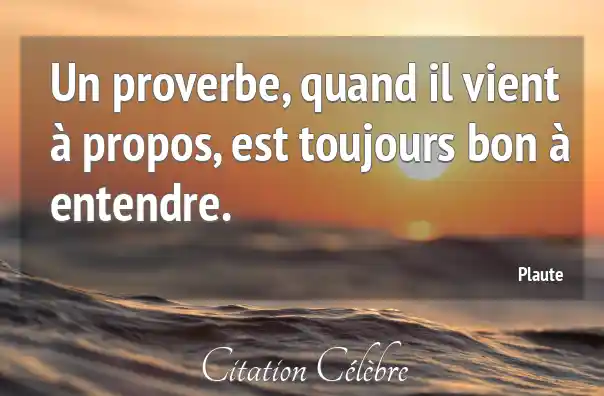 Un proverbe, quand il vient à propos, est toujours bon à entendre.
