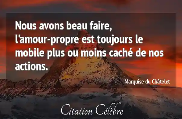 Nous avons beau faire, l'amour-propre est toujours le mobile plus ou moins caché de nos actions.