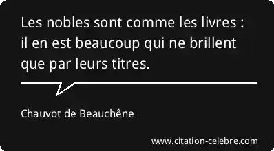 Les nobles sont comme les livres : il en est beaucoup qui ne brillent que par leurs titres.